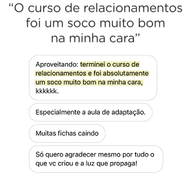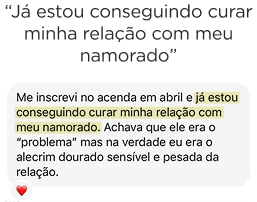 Não. No Treinamento, vou te entregar estratégias para curar todos os seus relacionamentos: amorosos, familiares, maternidade e até amizades.
